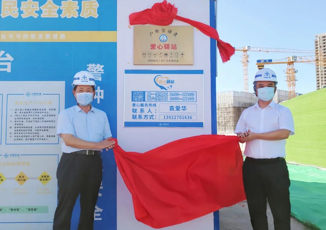 7月21日,公司首个户外劳动者爱心驿站在广州横沥项目部正式揭牌。广东省海员工会主席许囯胜、广东省总工会二级调研员周士超,公司党委副书记、纪委书记、工会主席王志强出席揭牌仪式,项目员工、工人代表共40余人参加。